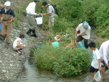 「まちづくりプロジェクト」では、昨年12月、鴨居寺橋からさかのぼって日休まで、川歩きをし、田草川を調べてみました。意外に汚れているところもありましたが、上流の方では、トンボの幼虫、ヤゴなども発見。私たちが、私たちの地域を流れる川に、あまりに無関心で来たことに気づきました。そこで、この調査を継続して行おうということになり、もっと大勢の人に参加してもらおう!ということになったわけです。 川の中に、どんな魚がいるか、どんな虫がいるか、川の中や土手にはどんな植物が生育しているか、専門家とともに調べます。植物や、生き物の種類によって、川がきれいか汚れているかも分かるのです。また、パックテストなどで、CODや亜硝酸性窒素、リン酸、アンモニウムイオンなど、化学的に川の水質について調べたりします。 当日は、山梨大学の北村教授、風間助教授を始め、大学や県の水産試験場などの専門家にもボランティアで来て頂き、一緒に歩きます。 ところで・・・ 最初は、町から委嘱されて、勝沼の景観や環境を考え、「都市計画マスタープラン」を考えるために集まった人たち。任期の2年が終わって、今度は自主的に、町民としてできること、何か行動することを考えています。ただいま、新メンバーをつのっています。そしてこの田草川調査隊が初めての自主的活動です。 |