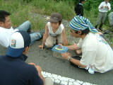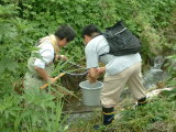 | 佐藤隊長メモ ■田草川が思ったよりずっと汚いのにショックを受けました。場所によっては、水そのも のが臭く、CODなどの値もかなり悪いこと,し尿から来るアンモニウムイオンの値も高 く、生息する水生生物も、「汚い水」の指標生物であるヒル、イトミミズ、ユスリカの幼 虫など、本当に気持ちの悪いものでした。 ■こんな川では、子ども達が入って遊ぶことなどとても考えられないと思いました。 ■果樹栽培のための肥料の影響、それにも増して生活廃水が川に直接流れ込んでいること が主な原因と考えられますが,勝沼生まれ,勝沼育ちの田草川は、本来、私たちの最も身近な川、子どもと一緒に入って遊べる川になれば、どんなに素敵なことかと思います。 ■この調査に参加して、「自分の目で見る」「自分の手で、川の魚をとる」事の大切さを 思いました。つまり、私たちは、毎日川の横の道を車で通るけれども、実際に入ったこと などなくて、自分で川に入ってみると、いろんなことがわかってきます。 ■川の姿を知って、自然というものを知って,この川を大切にしたいという思いが湧いてくる。この川がこんなにも汚れていることを目と鼻と頭で知って、何とかしなくちゃという思いが湧いてくる。「かつぬま」を知ることによって、このまちの景観や文化を守らなければという気持ちが湧いてくるのと同じだと思いました。 ■まだ参加者は少ないのですが,この調査を継続して行って、大勢の人がかかわってくれるようになれば、川の再生が可能になるのではと思います。 ■はじめの一歩を踏み出したばかりの私たちの活動ですが,頑張ってやっていこうと思っています。子ども達に勝沼のゆたかな景観と豊かな自然を手渡してあげるのが、かつぬまの大人の責任だと思うのです。 |
