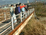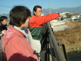 | まず最初は鴨居寺橋から 県の河川管理の課長さんから重川の整備計画の説明 |