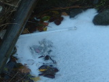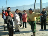 | h町議会議員さんが通りがかって昔の河原の様子を説明してくれました。 | この河原は昔、清水屋さんの水田だった。よく水を抜いて遊んで怒られた。昭和37年の大水で畑になった・・ | 犬の散歩コースになっているらしくいっぱい「犬のうん智」があって北村先生もあやうくのっかってしまいそうになりました。 |