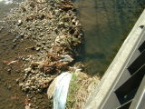 | 下流の堰堤だってこの泡。いくら川が浄化してくれるからってあまりにも・・・。 | 田草川の至る所にブルーシートから始まってマルチや缶からや一般ごみなどのオンパレード | 田草川は紛れも無く、勝沼生まれ勝沼育ち。だからこの汚れとゴミは勝沼から吐き出されたもの |