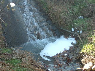| ここが問題の場所、用水路から流れ込んでいるのはまさしく汚水 | ||