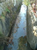 | この用水路からは明らかに・・・ | 洗濯機の中じゃないですよ。勝沼の中心を流れる川です。よく見ると蛍光灯まで・・・。 | 前回の調査でも悪臭を放っていた |
